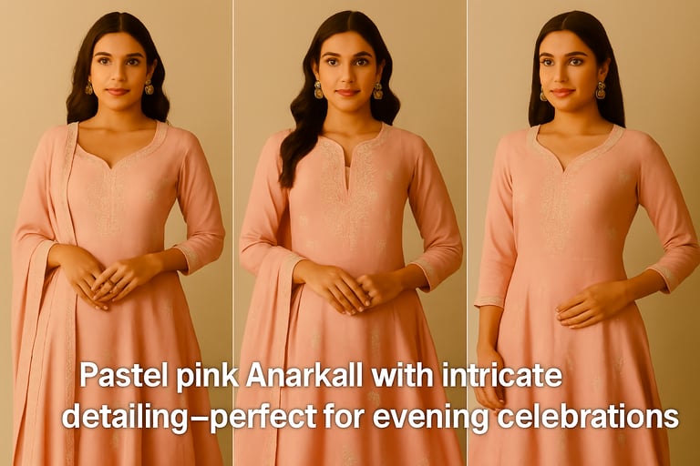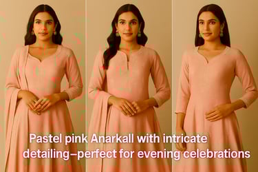 One of the standout pieces this season is the pastel pink Anarkali with delicate embroidery. Soft, romantic, and versatile, pastel pink is trending in 2026 as the color of choice for festive dinners and sangeet nights. The embroidery adds a touch of luxury, making it festive-ready while staying budget-friendly.