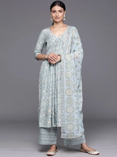 Shop Libas ethnic wear for festive occasions in India 2026. Discover pastel Anarkalis and kurta sets with gold embroidery at discounted prices on StrikeTheDeal.in.